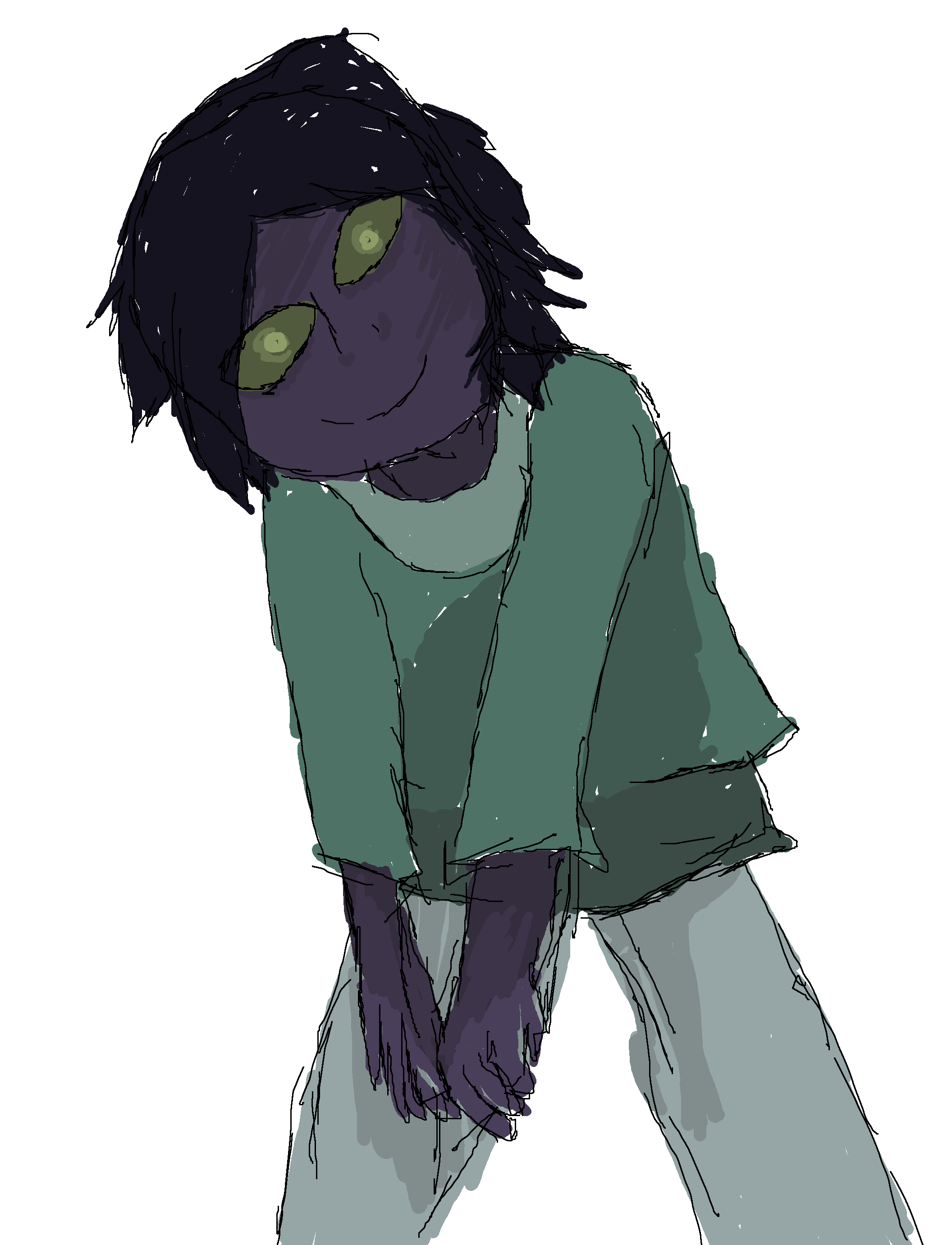 Physically, Abyssans are fairly short at a height of only 153 centimetres on average with an an androgynous standard humanoid frame (head, torso, 2 arms, 2 legs) with pale purple skin and dark hair. Due to their assimilation, their eyes and fluids are a reseda-green tone contrasting with the rest of their forms, though due to them not having been properly documented prior to their assimilation what their 'natural' eye colour is has never been found out. Abyssans are a gonochoric species, possessing only one reproductive sex which allows any individual to reproduce with any other within their species, which is still often done despite being part of a hivemind that propagates itself by assimilating new lifeforms, though their hivemind connection is typically not passed on following conception (due to Abyssal Connection only being transmissible via fluids for a few months) which necessitates assimilation either following or prior to birth.