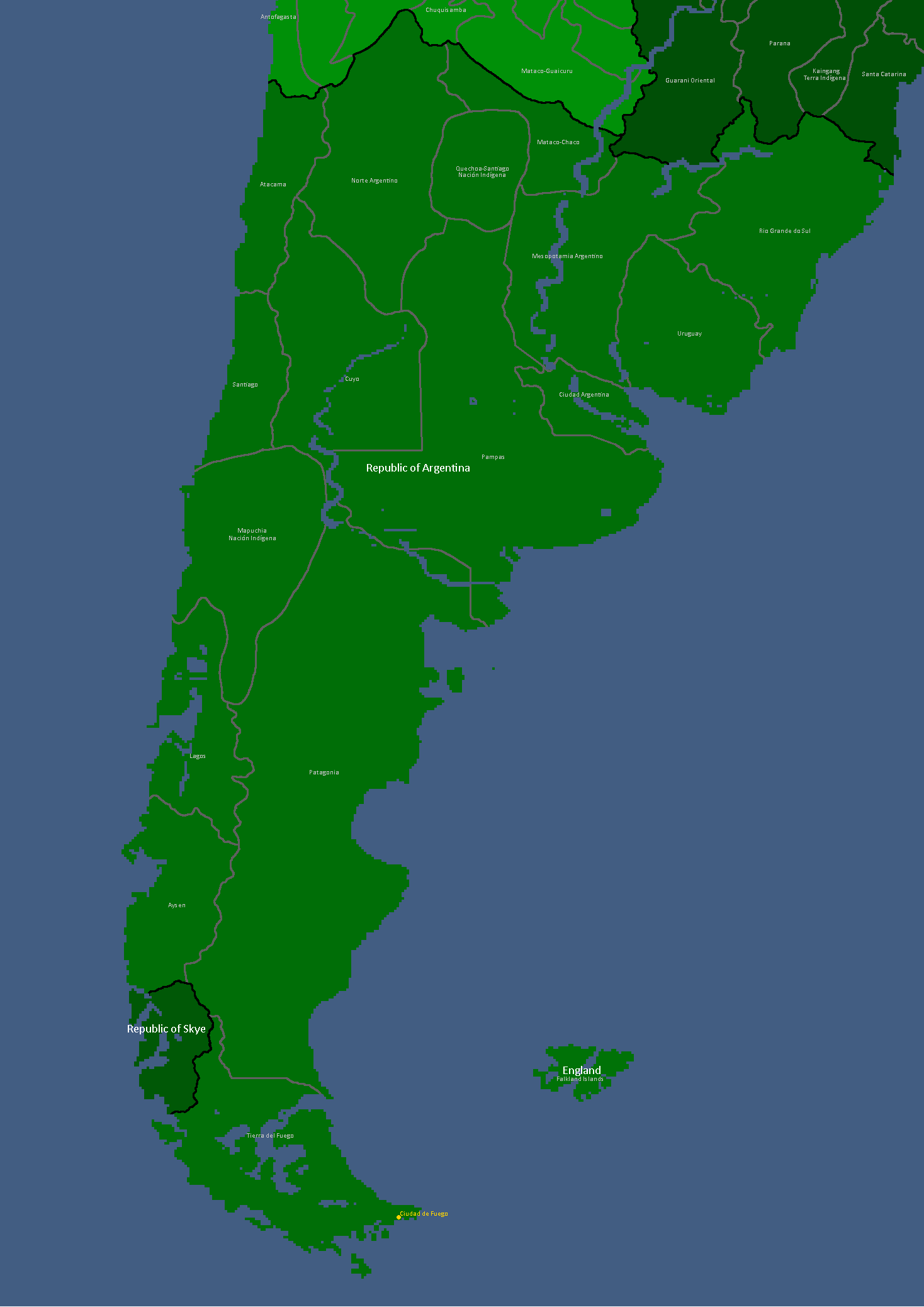 Ciudad de Fuego is a major city located on the south-eastern coast of Argentina (a member-republic of the Confederation of Yata) overlooking the confluence of the Antarctic and Atlantic Seas on its shores. It is the coldest and southernmost city within Argentina, making it somewhat of a tourist attraction due to its towering buildings and hostile climate. Unfortunately, Ciudad de Fuego is arguably the poorest major city of Argentina, which has contributed to a notable drug problem perpetuated by the Yatan Mafia to operate within the city.