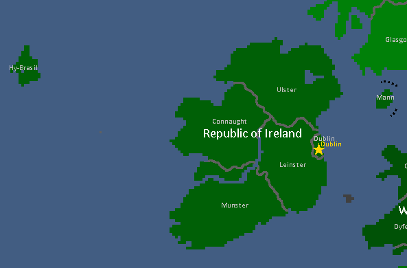 Dublin is the capital and largest city of Ireland (a member-republic of the Confederation of Yata) situated on its eastern coast along the Irish Sea. Most of Dublin is dominated by low-rise buildings, with the most notable building being the centuries-old 'Dublin Castle'.