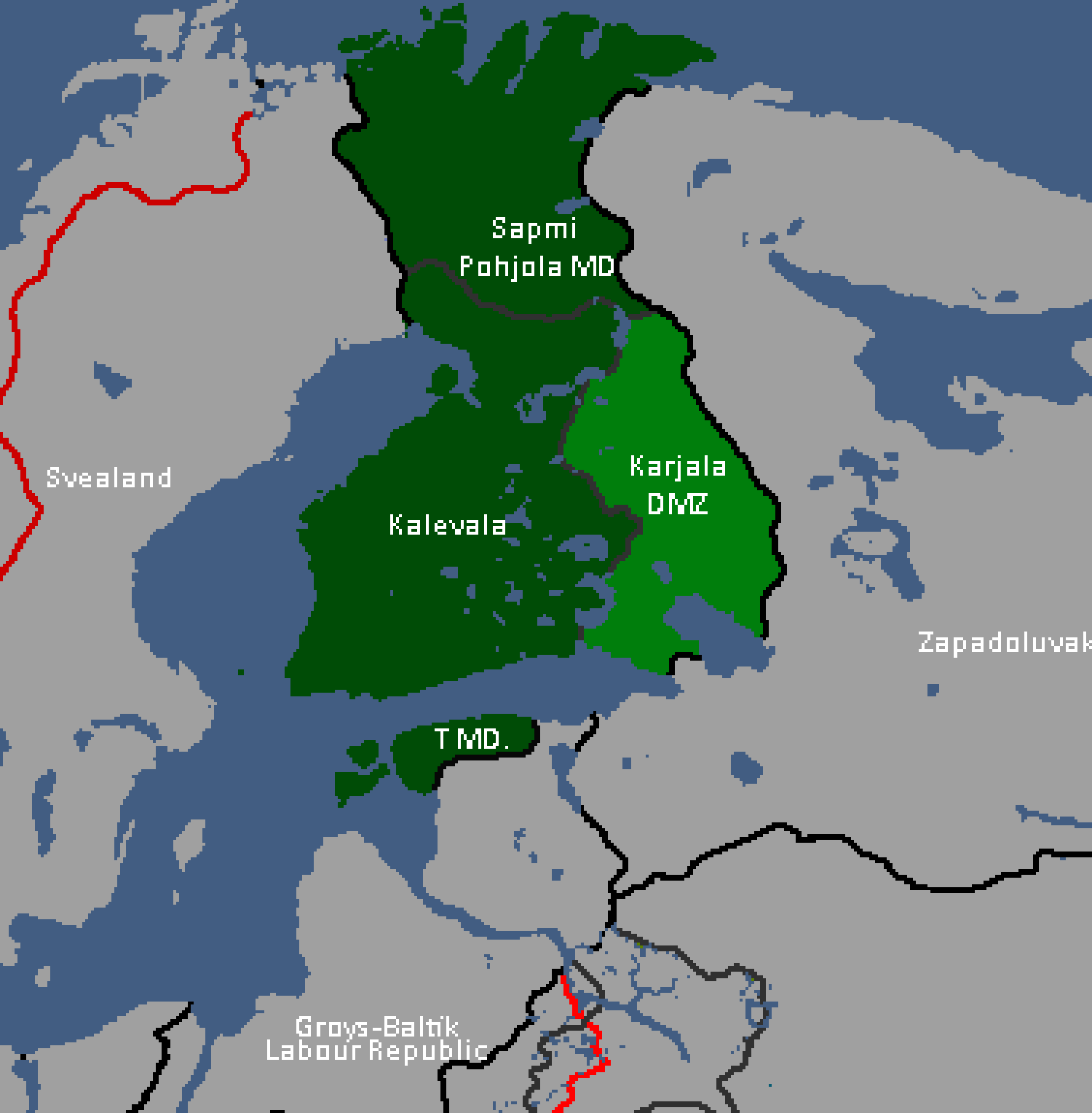 Within weeks, most of Kalevala fell under the rule of the MLL, prompting militias within the Karelian DMZ to rise up and proclaim the independence of the 'Karelian National Government', while in the north the Suomi-Pohjola Military District split in two as the 'Sapmi Regional Assembly' revolted. Rather easily, the MLL managed to overwhelm the Kalevian government enough to capture Helsinki, forcing the former government to flee to Tanume as the 'military districts' collapsed and largely fell under the rule of the newly proclaimed 'Kalevian Empire', which began to wage war against the separatists. Now mainly limited to solely Tanume, the Republic of Kalevala began to fall into disarray as the 'Tanumian Independence Board' rose up to expel the Republic's remains, leading to a largescale insurgency war in the region.