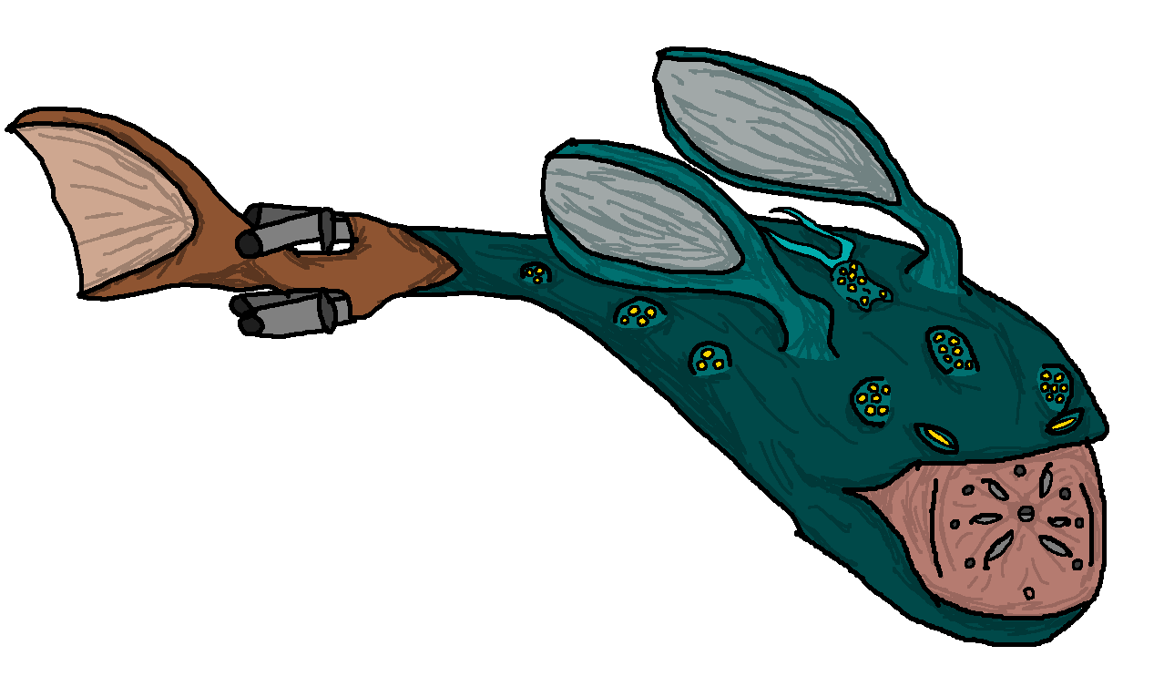 The internal systems of the ships are powered via nuclear fusion reactors primarily for their efficiency and ease of use. Though these may often be swapped out for less efficient powering systems during intergalactic flights[2] designed to pertain to long-duration energy generation. Additionally to these reactors the bioship can extend wings[3] which can draw in energy from stars should the ship be in range. The wings are also utilised for guiding hydrogen used for ramscooping by guiding hydrogen and helium from interstellar space and stellar winds to systems responsible for this process in the ship's "mouth", from which the material is re-guided to the engines in order to be processed into fuel for the fusion reactors. A Fan-like tail structure at the rear of the rear of the ship is used to radiate excess heat from the reactors and engines.
