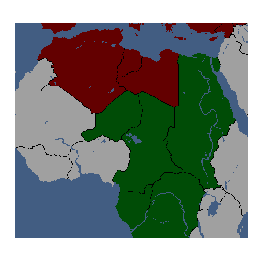 Khat attacked into Jeriya while Yetia advanced into Saharia and Bornuvia, though with Wanaoishian aid the two soon managed to hold back the Yetians as Khat pushed deep into Yetian holdings. All of the sudden, Yetia launched a naval invasion of Nyumba, forcing Equatoria and Wanaoishi to pull back their support to deal with the invasion while some of Yetia's protectorates began trying to sabotage them in order to break free. Yetia spread throughout Wanaoishi's rivers, reaching Kungani around the same time that it captured Alshqati. Equatoria and Wanaoishi managed to cut off the Yetians from sea access while a National State was set up in Saharia. Khat began seeing significant difficulties in its operations, making them slowly lose morale and confidence in their war capabilities as Yetia launched a massive counteroffensive in Saharia and Jeriya. Yetian forces trapped in central africa fled via the sea while Khat was forced to retreat from Jeriya and Bornuvia's capital of N'Djamena was captured by Yetia despite resistance movements in Saharia expanding. Yetia was granted military access thru Hayah, allowing it to invade thru the Sinai to attack Khat from two sides, cutting off significant numbers of Khatian soldiers in Cairo. A smallscale uprising begin in Jeriya as Yetia advanced, although this was soon crushed alongside the Saharian resistance. Yetia kept advancing deeper and deeper into enemy territory as the African states failed to find international allies, leading to the sabateurs in Vedaburg and Italy to realise the only way to get out of Yetia was to assassinate the premier, though this plan would not be ready in time. Continuing to lose on all fronts, Wanaoishi was tasked with negotiating a peace agreement with Yetia, with Yetia demanding unconditional surrender, which the five nations reluctantly accepted as they were forced to recognize the National States over Sharia, Bornuvia, North Khat, and Darfur.