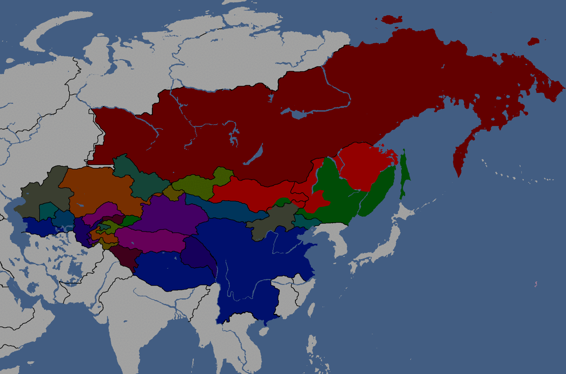 Sizzle inexplicably had a civil war after the Luxurian-Coalition War, while Meninguo and Kitayato began pushing Lineland out of their own territory. Anakistan began fighting the Kyrgyz and Kazakh warlords while Kitayato pushed into Sizzle and the Kazakh peoples unified. Kitayato suddenly collapsed as the 'Shenyang People's Front' rose up against their ethnically Yakamotian rulers, swiftly overthrowing Kitayato before launching an invasion of Sizzle. Once Sizzle was successfully overthrown, the People's Republic of Sizzle was declared as the SPF now began subjugating the other warlords as well as Anakistan and Utsong. The SPF soon reunified Sizzle while establishing a puppet regime in Turkestan. All of these events were subsequently retconned due to not being a very good storyline for Sizzle.