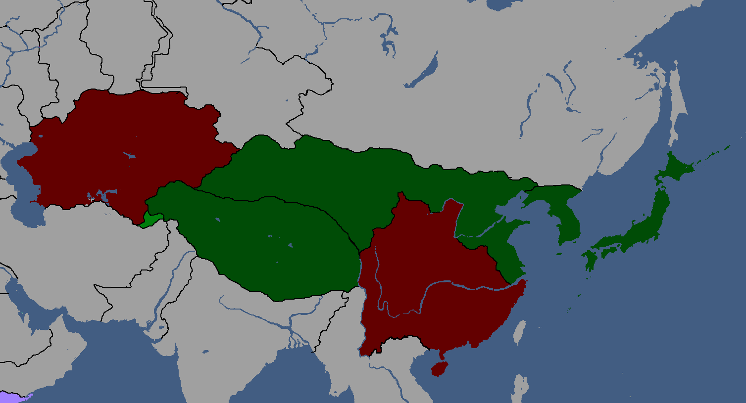 Along the shores of the Yellow River, fortifications dividing the Kingdom of Sizzle and Sizzlean Panfuturistic Collective stood in a uneasy peace overlooking one another. During a northern military exercise, artillery was accidentally fired across the river, leading to the south firing back out of fear of this being an enemy attack, prompting the north to fire back out of panic as the skirmishes spread across the borders. Both nations accused the other of instigating this conflict, eventually leading to South Sizzle declaring war. Seeking to help their ally, Turkestan soon also declared war on (north) Sizzle prompting Utsong and Yakamoto to come to Sizzle's aid.