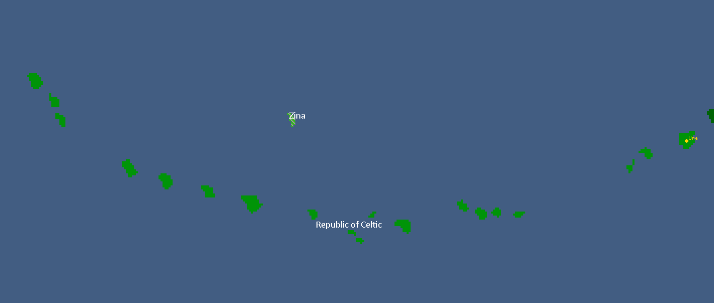 Une is a village located in Celtic (a member-republic of the Confederation of Yata), being among the most populous and oldest settlements in the nation. Much like other Celtic settlements, it is named after the French word for 'one' due to its position as the easternmost island of the nation.