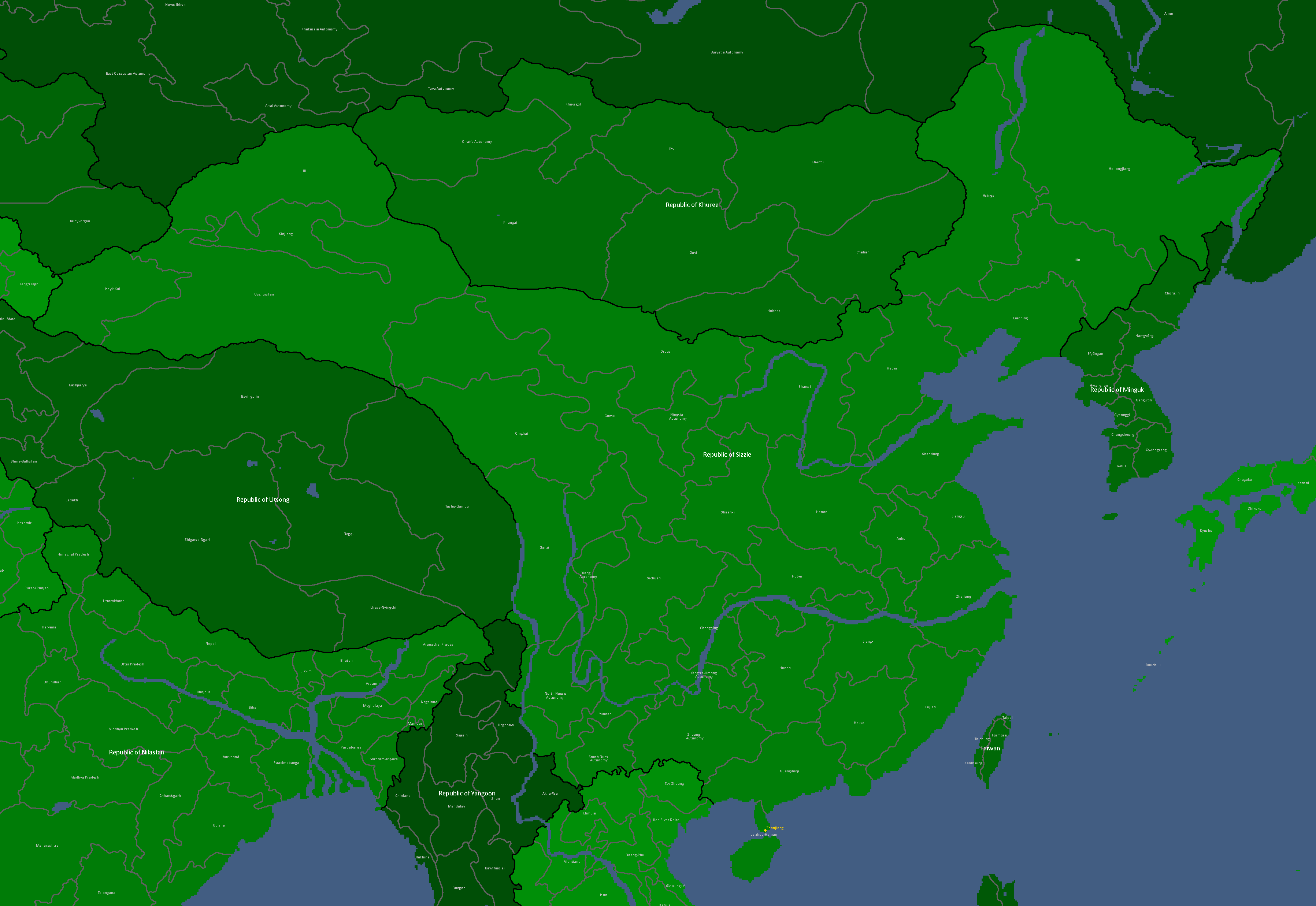 Zhanjiang is a city located in the southern Leizhou-Hainan Province of Sizzle (a member-republic of the Confederation of Yata) as the capital of Asgorth, though despite this it has been fairly insignificant historically as the only major battle to occur there being during the Second Sizzlean War of Independence.